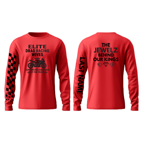 *Front: “Elite Drag Racing Wives – Supporting Our Kings of the Track” with motorcycle graphic
