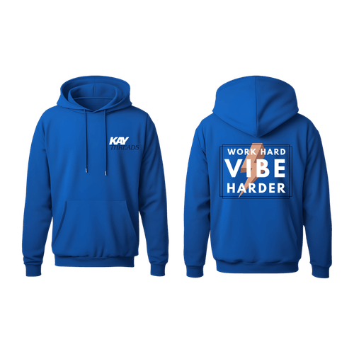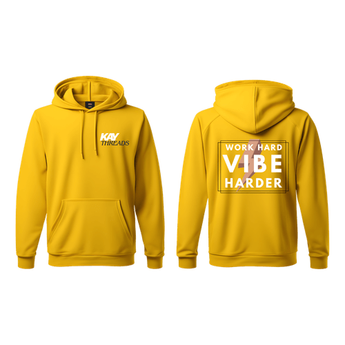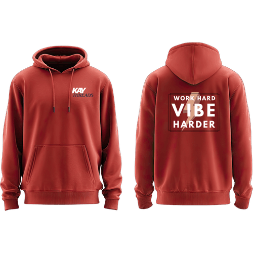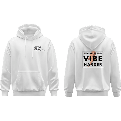 Designed for those who turn obstacles into opportunities, this hoodie combines bold style with premium comfort. Featuring the Work Hard — Vibe Harder graphic, this piece is perfect for layering and making a statement.