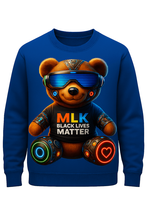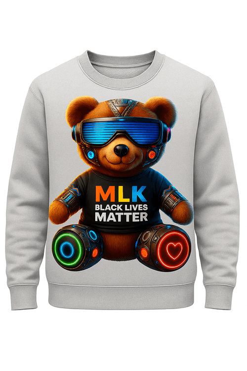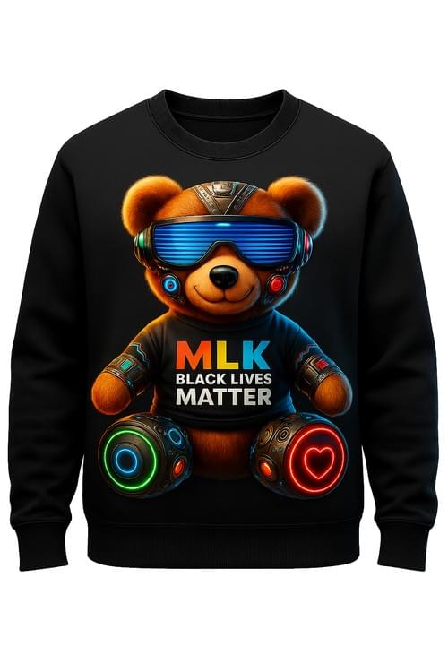 Celebrate equality and futuristic style with our MLK Black Lives Matter Sweatshirt featuring a bold Cyber Bear design. This premium sweatshirt combines comfort with a powerful message of unity and justice. Perfect for casual wear, streetwear, or making a statement at events.