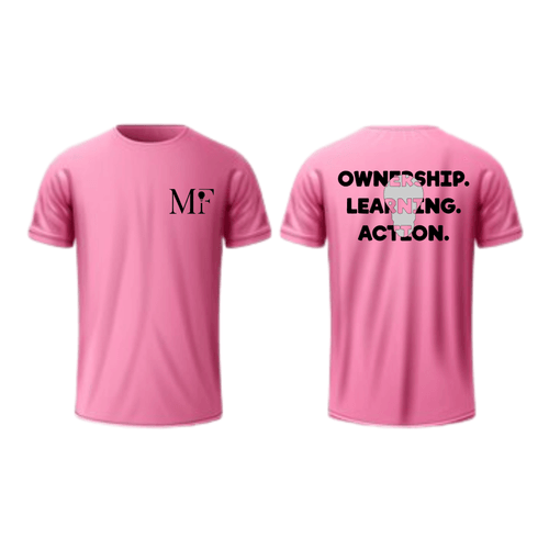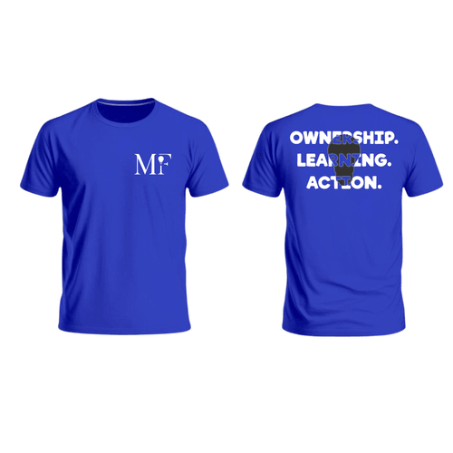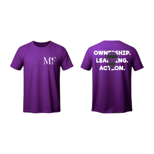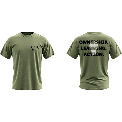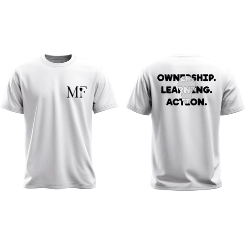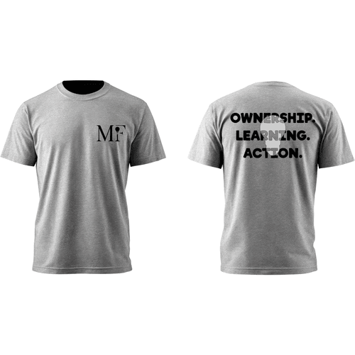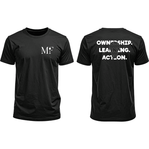 Featuring the MF Mindset First logo on the front and the powerful Ownership. Learning. Action. mantra across the back, this shirt blends minimal design with maximum impact.