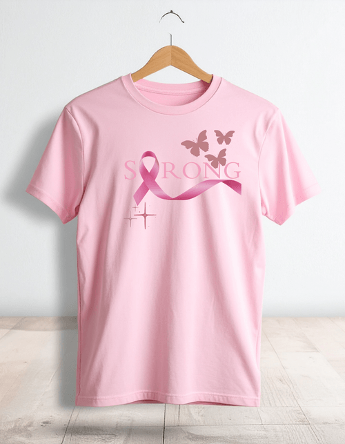 Empower your wardrobe with the STRONG Butterfly Ribbon Tee, a bold tribute to breast cancer warriors and survivors. This inspiring design features the word “STRONG” paired with a pink ribbon and three delicate butterflies — symbols of transformation, hope, and resilience.