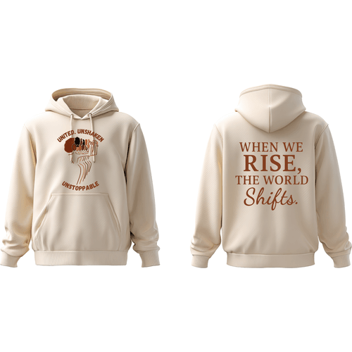Elevate your style with purpose. The United & Unshaken Cream Hoodie and Sweatshirt is more than apparel—it’s a statement of strength, unity, and resilience. Featuring a bold front graphic of raised fists with the empowering words “United. Unshaken. Unstoppable”, and an inspiring back message: